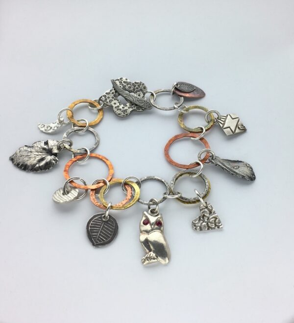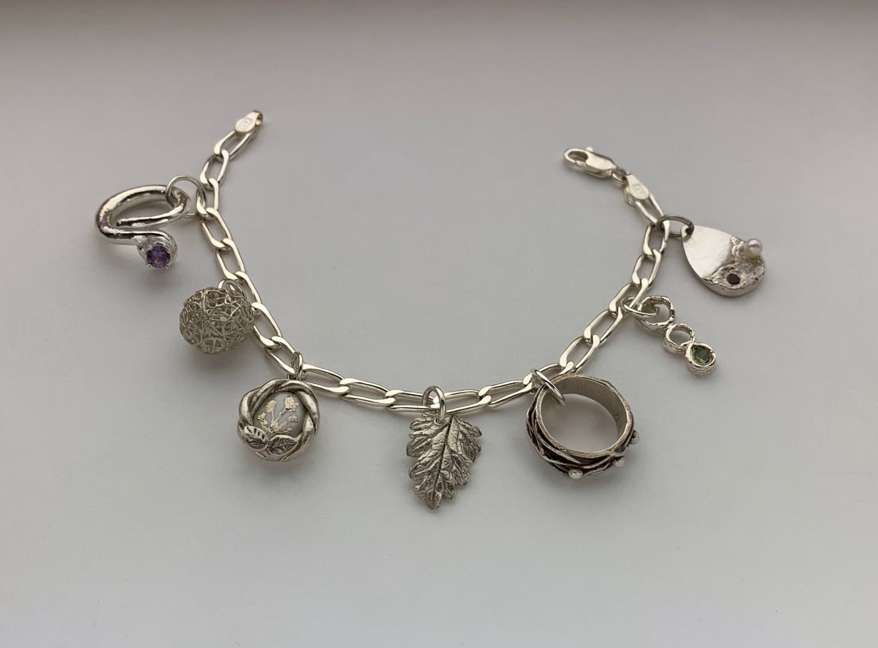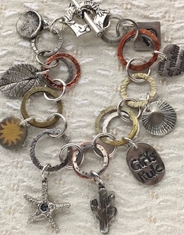 Come discover how to capture your memories in silver metal clay. Students will learn basic metal clay techniques and create personalized bracelet charms, from stamping clay with descriptive words or symbols, to capturing fingerprints, to making molds for charm replication. Hours: 9:30 AM – 1 PM